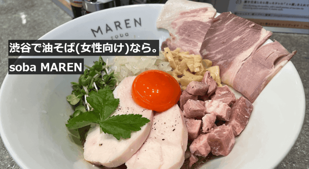 soba MARENは、こってり一択の油そばではなく、しょうゆ/鶏塩の2軸に、チャーシュー増しや、気分を変えたい日の魚介×鶏白湯までラインナップが分かれているのが強み。今日は「軽めでいきたい」「ちゃんと満足したい」「スープも欲しい」——その揺れに、メニューの構成そのものが答えてくれます。